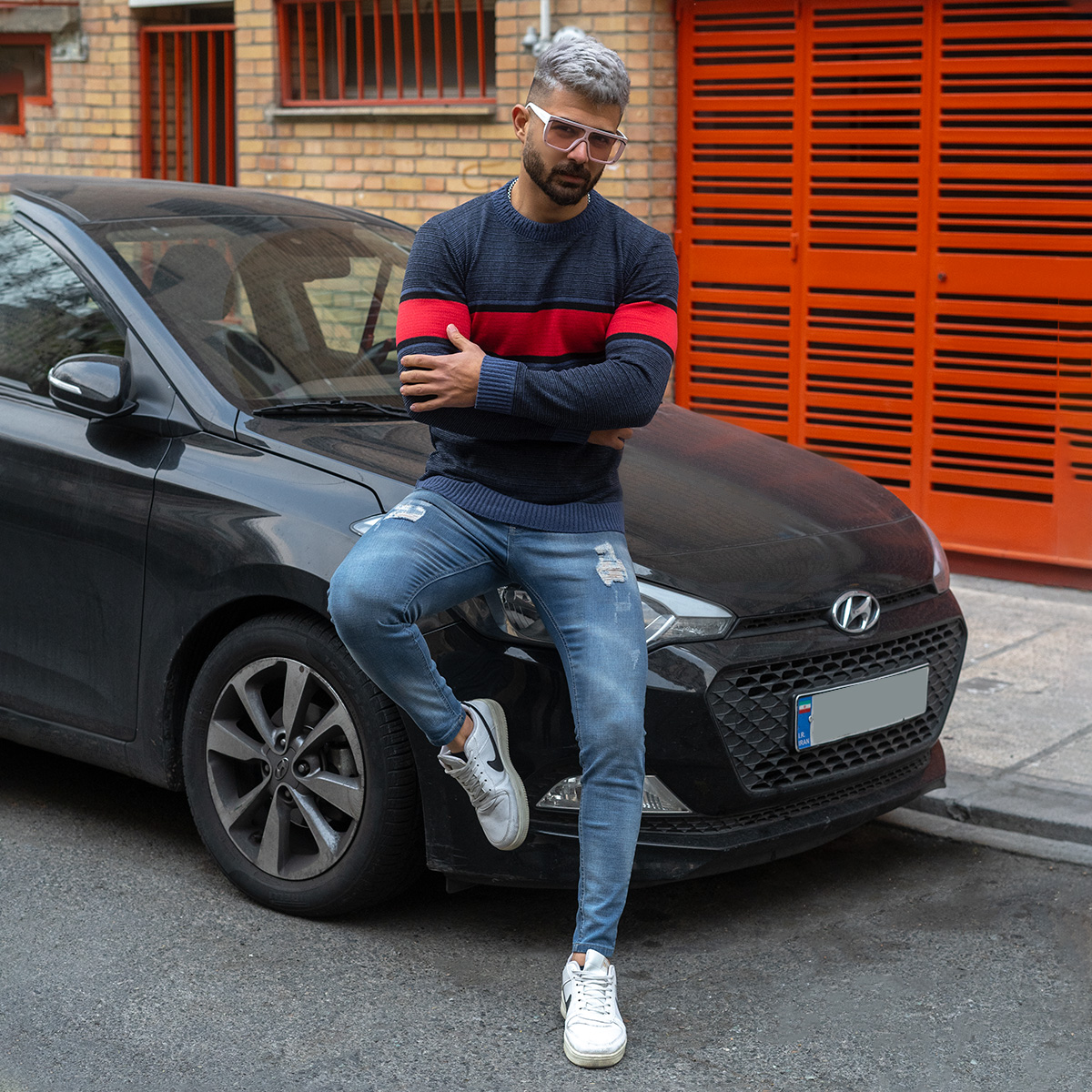 پلیور مردانه قرمز- سرمه ای مدل Madis